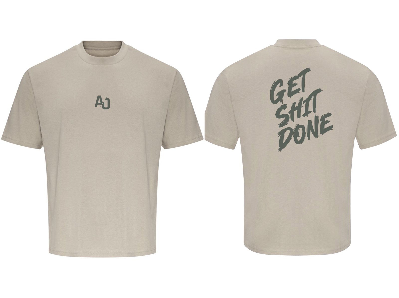 Off White Oversized Tee with Forest Green Logo/Text