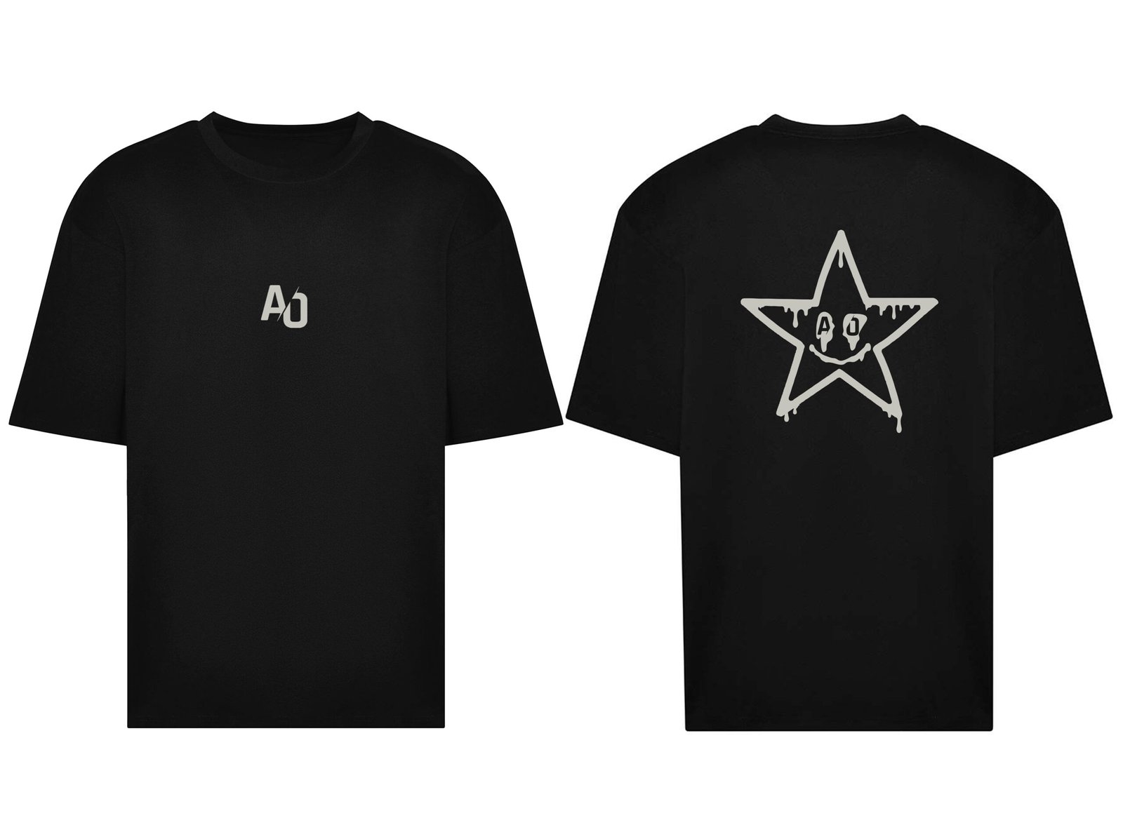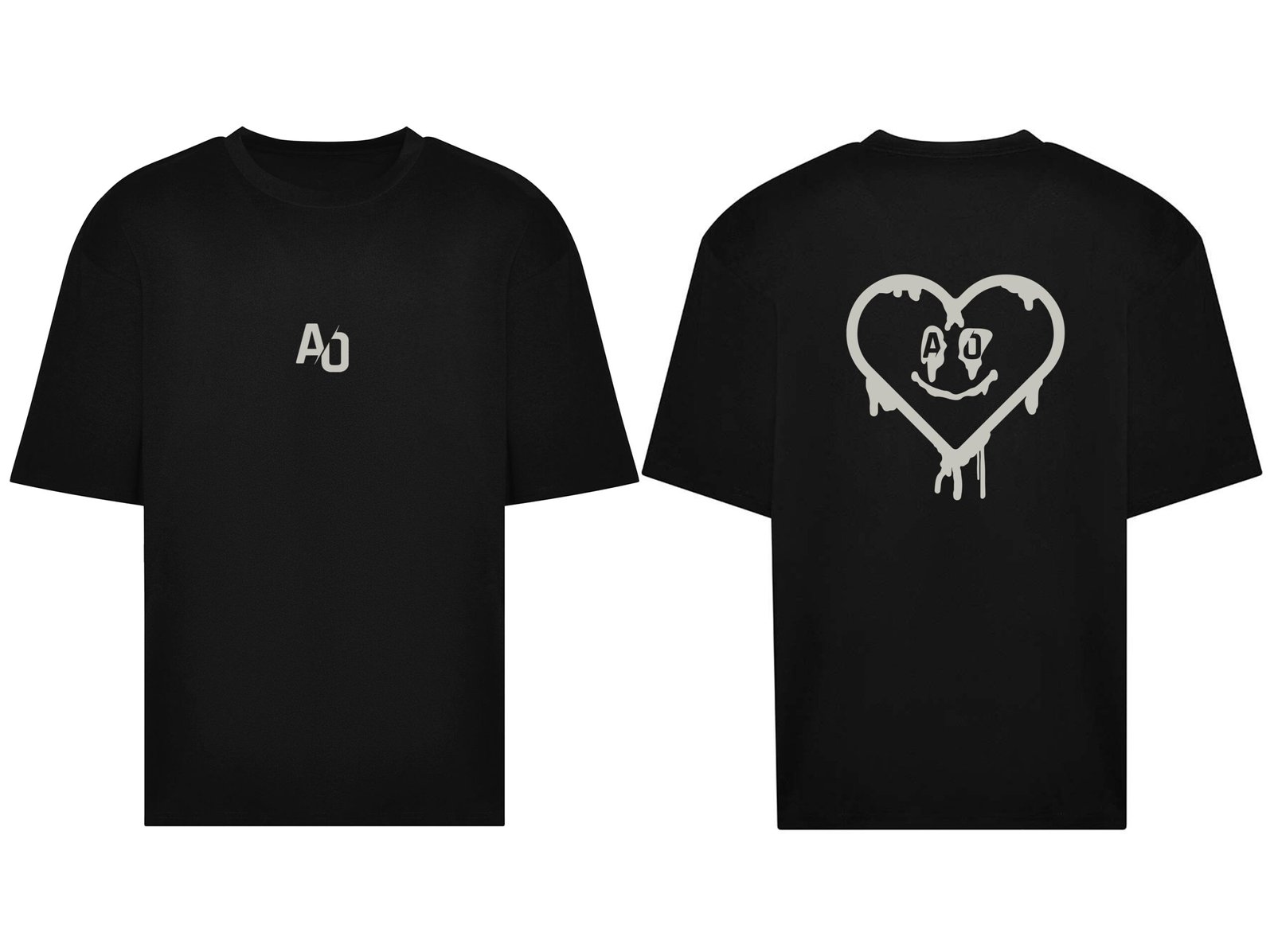 Black Oversized Tee with Grey Silicone Logo/Text